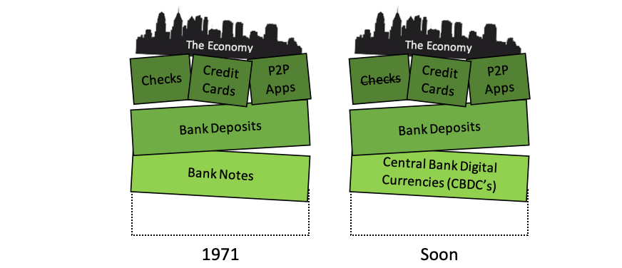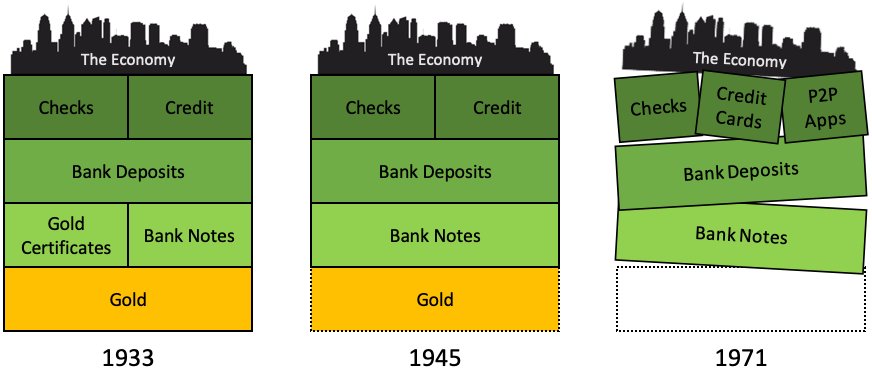 The answer lies in the surprising fact that money has layers, and each layer is designed to do something different. Here’s an example of the traditional monetary layers that existed for much of recent history: